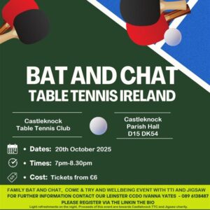20oct7:00 pm8:30 pmBat And Chat – Castleknock7:00 pm – 8:30 pm Castleknock Parish Hall