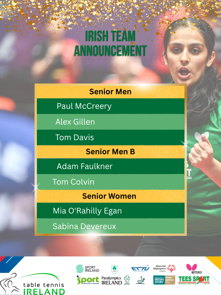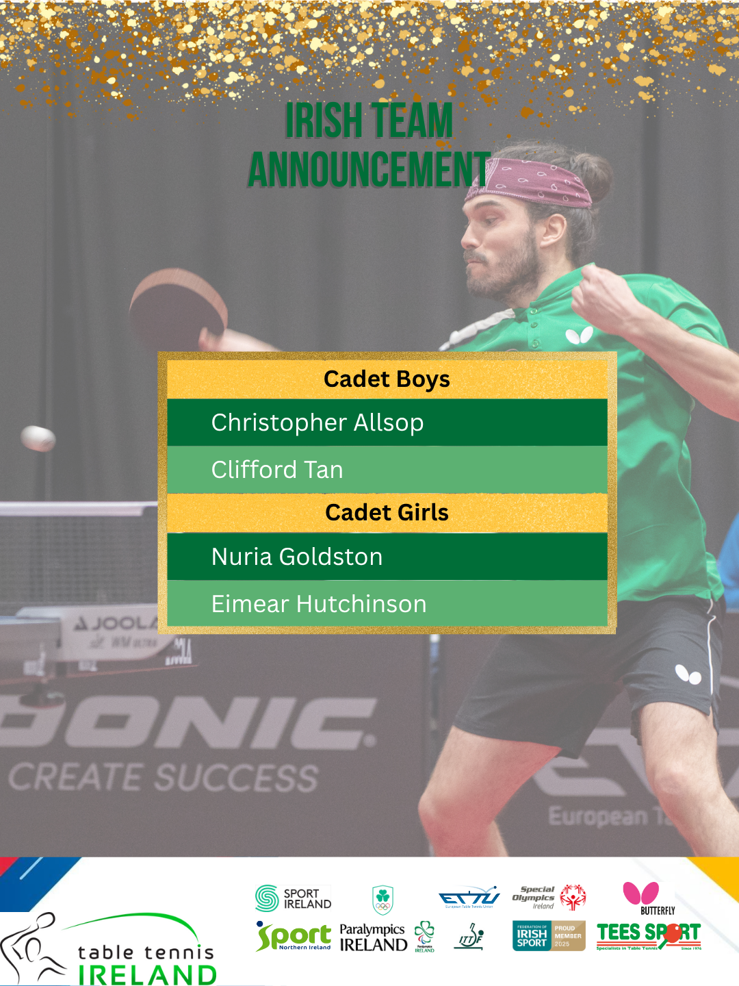 Table Tennis Ireland is delighted to announce the Ireland squads for the UCD Home Countries International 2025, where teams from Ireland, England, Scotland, Wales, the Isle of Man, Jersey and Guernsey will compete across Cadet, Junior and Senior categories.