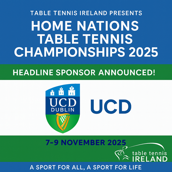 Table Tennis Ireland is proud to announce that University College Dublin (UCD) will be the Headline Sponsor of the ‘UCD Dublin Home Nations Table Tennis Championships 2025′, taking place on 7th–9th November 2025 at the National Basketball Arena, Tallaght.